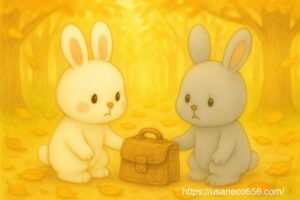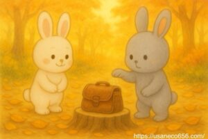 こまちちゃんとめいたくんは、古いカバンを見つめて静かに話しました。