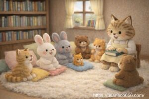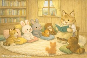 「きょうは、お・は・な・し会の日だよ」