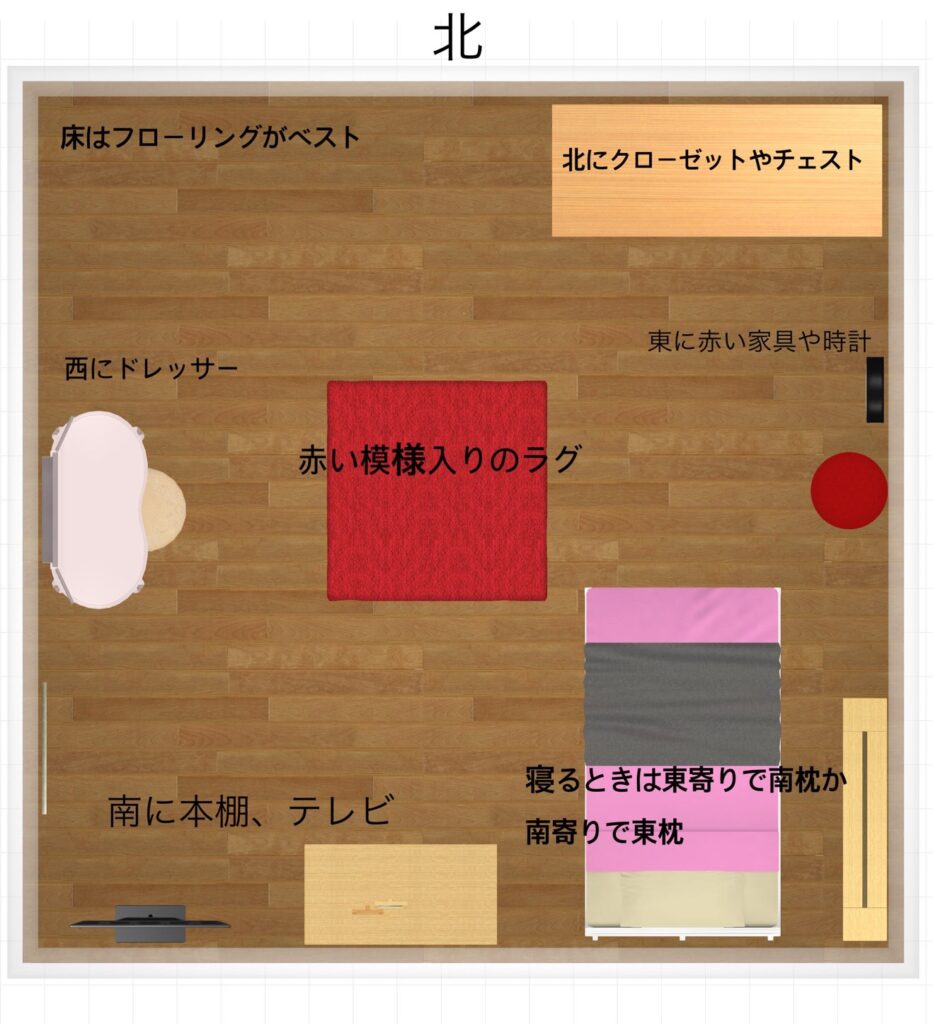 ベッドや布団を置く場所は、寝室の東寄りで南枕南寄りで東枕で寝ましょう。